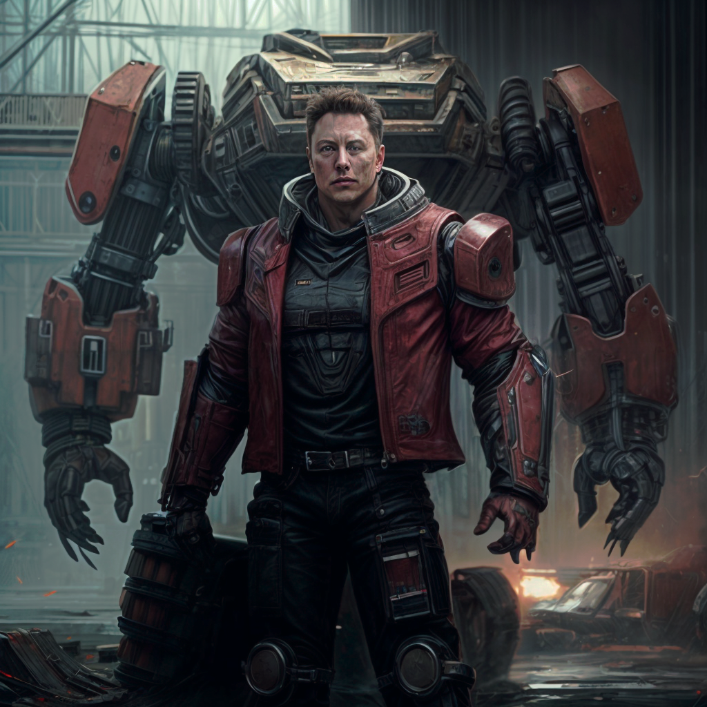 In the steel-laden landscape of Industria-5, a figure stood silhouetted against the backdrop of mechanized giants. His name was Elon, not just a man but an idea, an ethos that thrived amidst the whirring of gears and the roar of rocket engines.